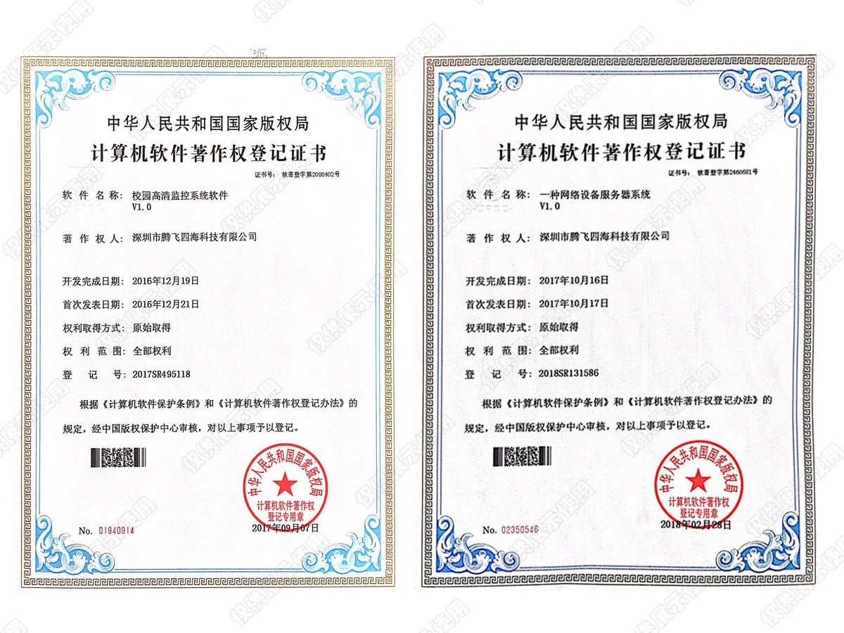 深圳市騰飛四??萍加邢薰緦WF(xiàn)代化企業(yè)信息建設(shè),爭做國內(nèi)互聯(lián)網(wǎng)與安防領(lǐng)域的領(lǐng)導(dǎo)者。作為一家擁有自主知識產(chǎn)權(quán)的國家高新技術(shù)企業(yè),在成立之初便堅(jiān)持從用戶的實(shí)際需求出發(fā),以質(zhì)量求發(fā)展,以信譽(yù)求生存。歷經(jīng)15年的風(fēng)雨路程,如今,我們已榮獲電子與智能化專業(yè)承包資質(zhì)、廣東省公安廳安防資質(zhì)、安全生產(chǎn)許可證資質(zhì)、計(jì)算機(jī)信息系統(tǒng)集成等多項(xiàng)資質(zhì)。截止目前公司已通過:ISO9001質(zhì)量管理體系認(rèn)證,ISO14001環(huán)境管理體系和ISO45001職業(yè)健康安全管理體系;榮獲AAA資信認(rèn)證、實(shí)用新型專利證書、計(jì)算機(jī)軟件著作權(quán)登記證書。公司現(xiàn)為深圳市安防協(xié)會(huì)理事單位,深圳市文明誠信企業(yè),廣東省“守合同重信用”企業(yè)、深圳市政府采購中心供應(yīng)商等多個(gè)榮譽(yù)證書。